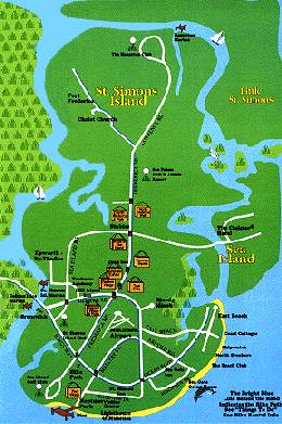 Once on the island, bear left at the fork so that you are on Demere Rd. GO straight through 2 traffic lights. You will cross Frederica Rd. at the second light and the airfield will be on your right. Wind your way among ancient moss-covered oaks for about 1 ˝ miles. Then take a left turn onto East Beach Causeway. EBC will deadend at a stop sign. Turn right at that stop sign. You will be on Wood Ave. Follow Wood Ave. to the 4 th. Left (Driftwood Dr.). 'Driftwood' is the second house on your right. ![]()
